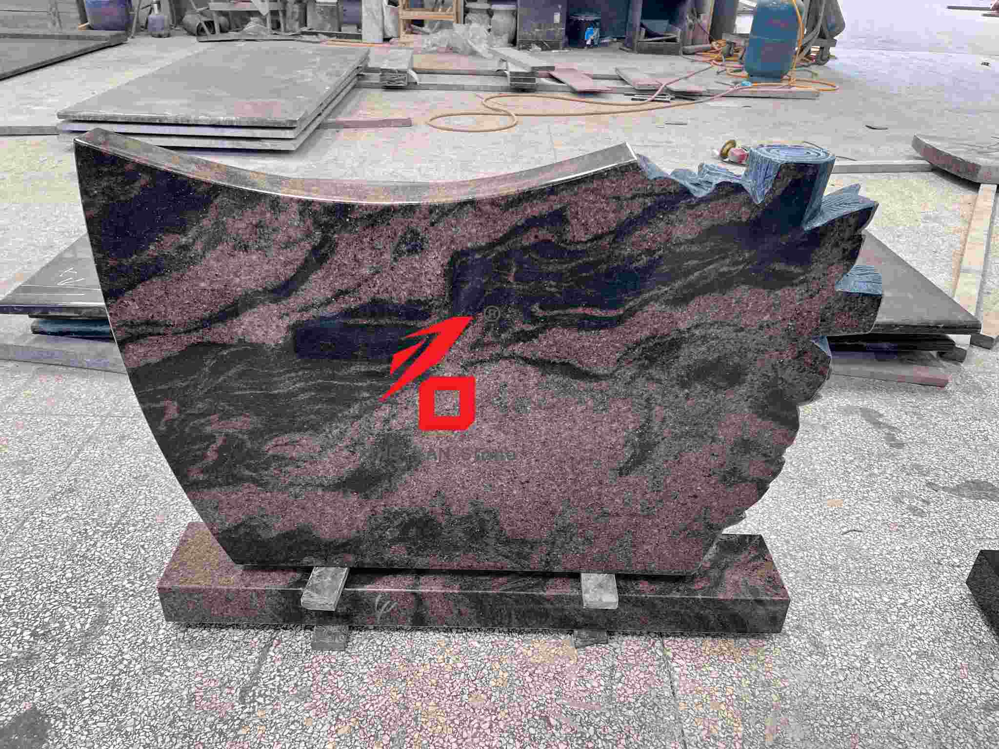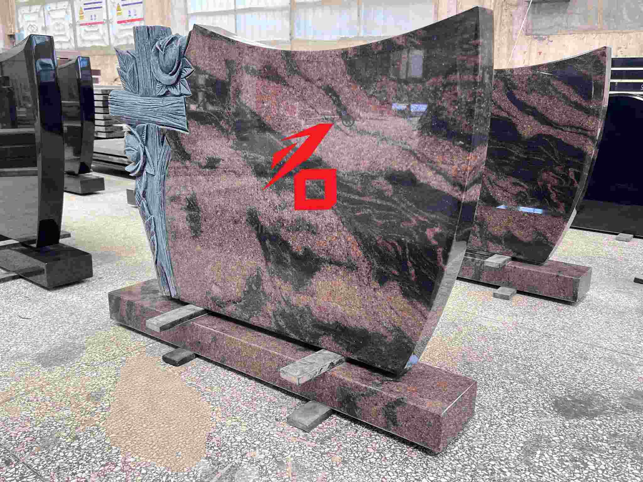 Medžiaga: Pasirinktas purpuriškai raudonas dėmėtas granitas (stabili spalva, kieta tekstūra), poliruotas paviršius, derinant estetiką ir atsparumą oro sąlygoms, tinkamas ilgalaikiam pastatymui lauke;
