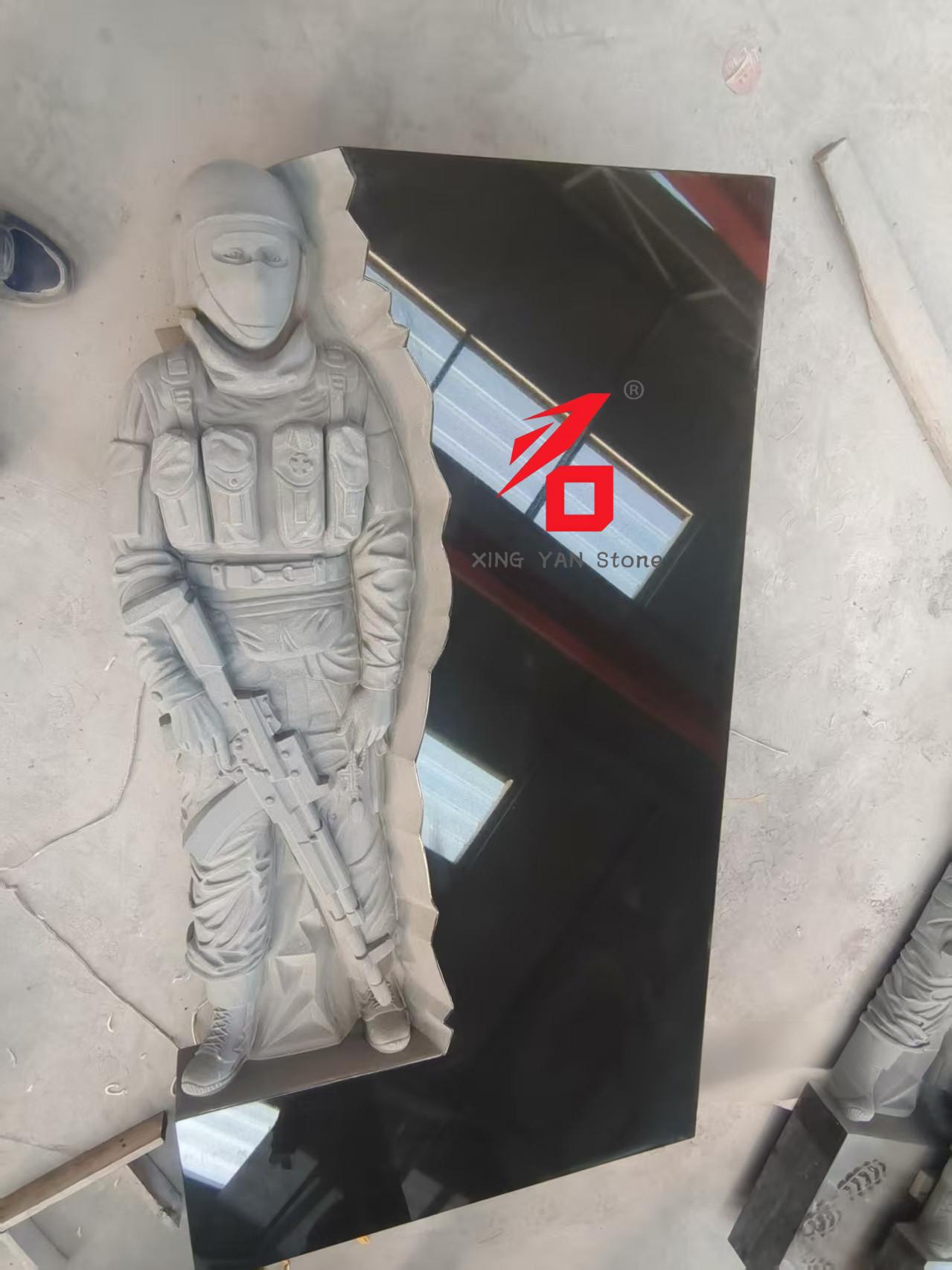 Medžiaga: didelio kietumo juodas granitas (pvz., Indijos juodasis granitas), smulkiai poliruotas, kad būtų lygus, blizgus paviršius, atsparus oro sąlygoms ir korozijai, tinkamas ilgalaikiam eksponavimui lauke;